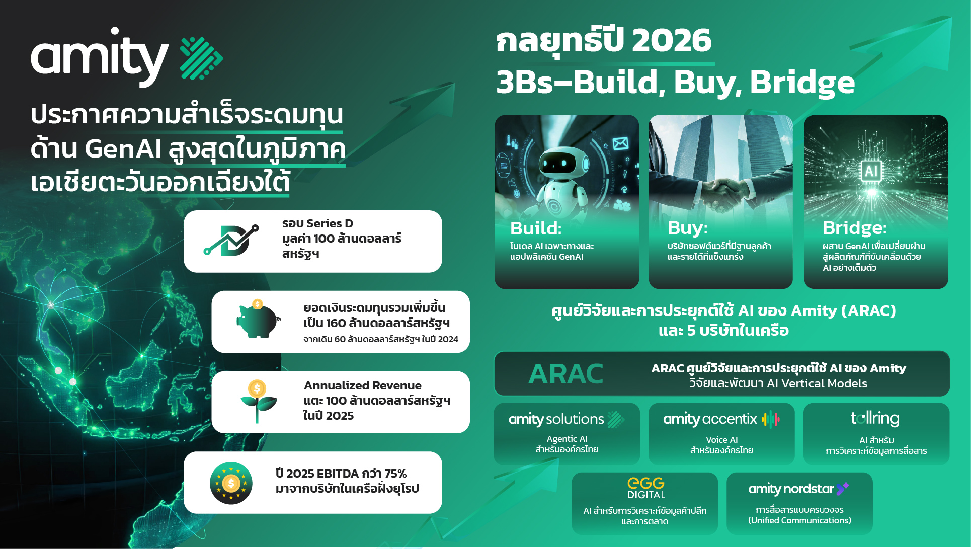 Amity ปิดดีล Series D 100 ล้านดอลลาร์ ผ่านกลยุทธ์ 3Bs ขึ้นแท่น เทคคอมพานีไทยที่ระดมทุน GenAI สูงสุดในเซาท์อีสเอเชีย