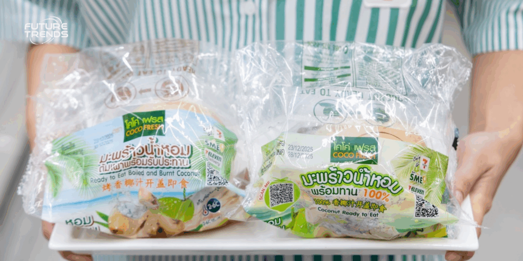 คำแนะนำจากทีมงานเซเว่น มีบทบาทสำคัญในการเปลี่ยนทิศทางของสินค้า จากมะพร้าวที่ต้องเฉาะ มาสู่มะพร้าวพร้อมทานที่เปิดง่าย ตอบโจทย์พฤติกรรมของผู้บริโภคไทยได้อย่างตรงจุด ความร่วมมือครั้งนี้จึงไม่ได้แค่ทำให้สินค้าขายได้ดีขึ้น แต่ช่วยยกระดับมาตรฐานของ SME ไทย ให้พร้อมรับมือกับต้นทุน การขยายกำลังการผลิต และการแข่งขันในโลก Ready to Eat อย่างแท้จริง