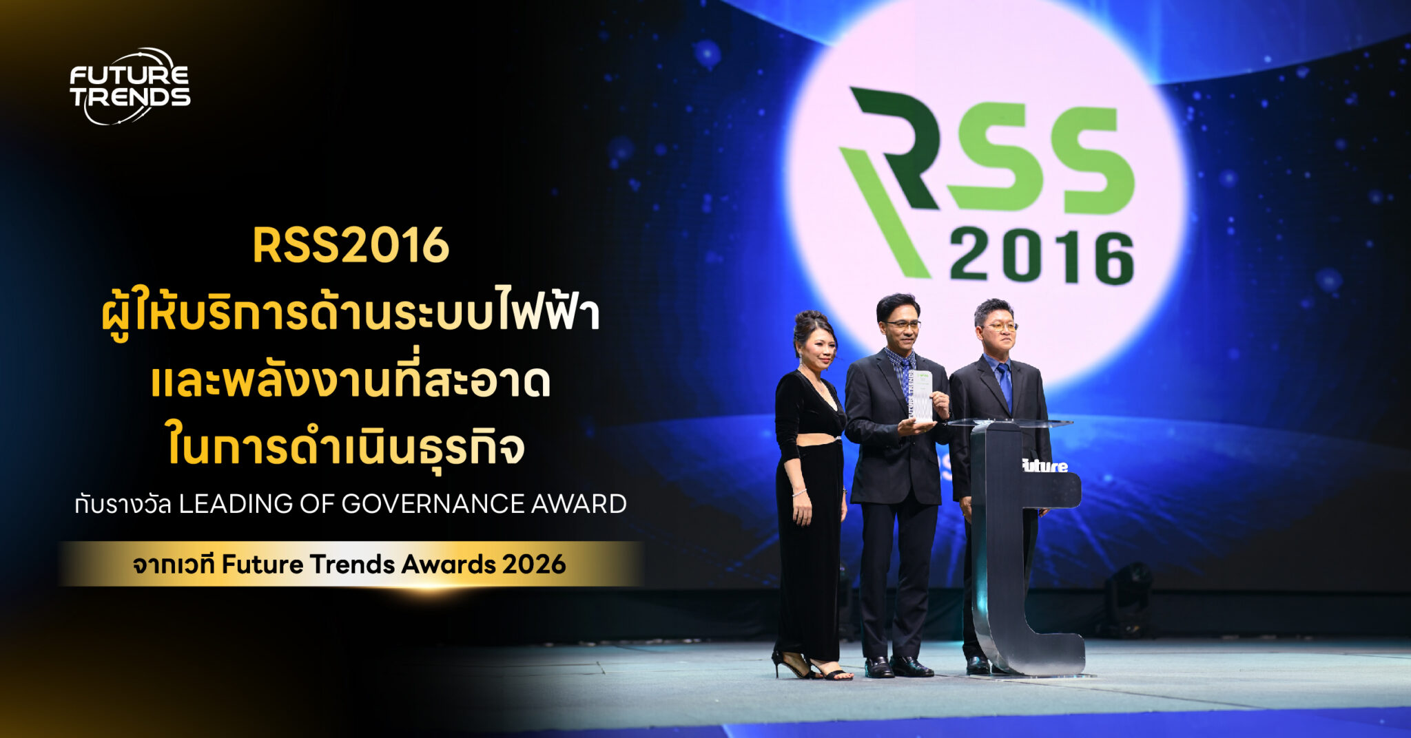 RSS2016 ผู้ให้บริการด้านระบบไฟฟ้าและพลังงานที่สะอาดในการดำเนินธุรกิจ กับรางวัล Leading of Governance Award จากเวที Future Trends Awards 2026