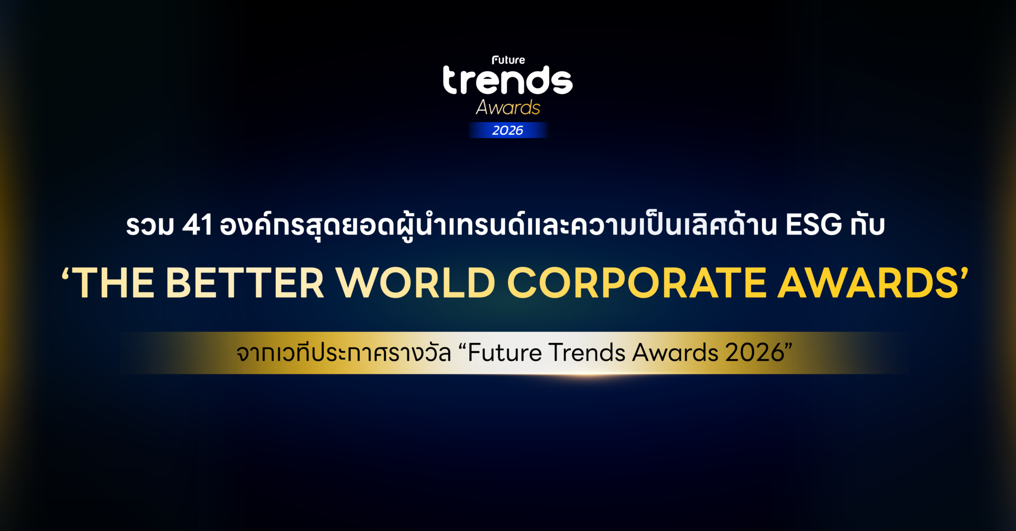 รวม 41 องค์กรสุดยอดผู้นำเทรนด์และความเป็นเลิศด้าน ESG กับ ‘The Better World Corporate Awards’ จากเวทีประกาศรางวัล Future Trends Awards 2026