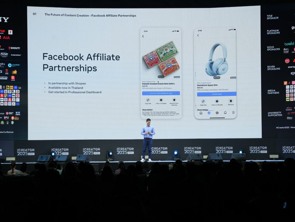 นอกจากนี้ยังมีแพลตฟอร์มระดับโลกอย่าง Meta(Facebook และ Instagram), TikTok Shop, YouTube Thailand,Lemon8 และ Shopee มาร่วมอัปเดตภาพรวมสถิติและเทรนด์บนแพลตฟอร์ม รวมถึงการสร้างคอมมูนิตี้ให้แข็งแกร่งเพื่อเป็นประโยชน์ต่อการยืนระยะของครีเอเตอร์บนทุกแพลตฟอร์ม