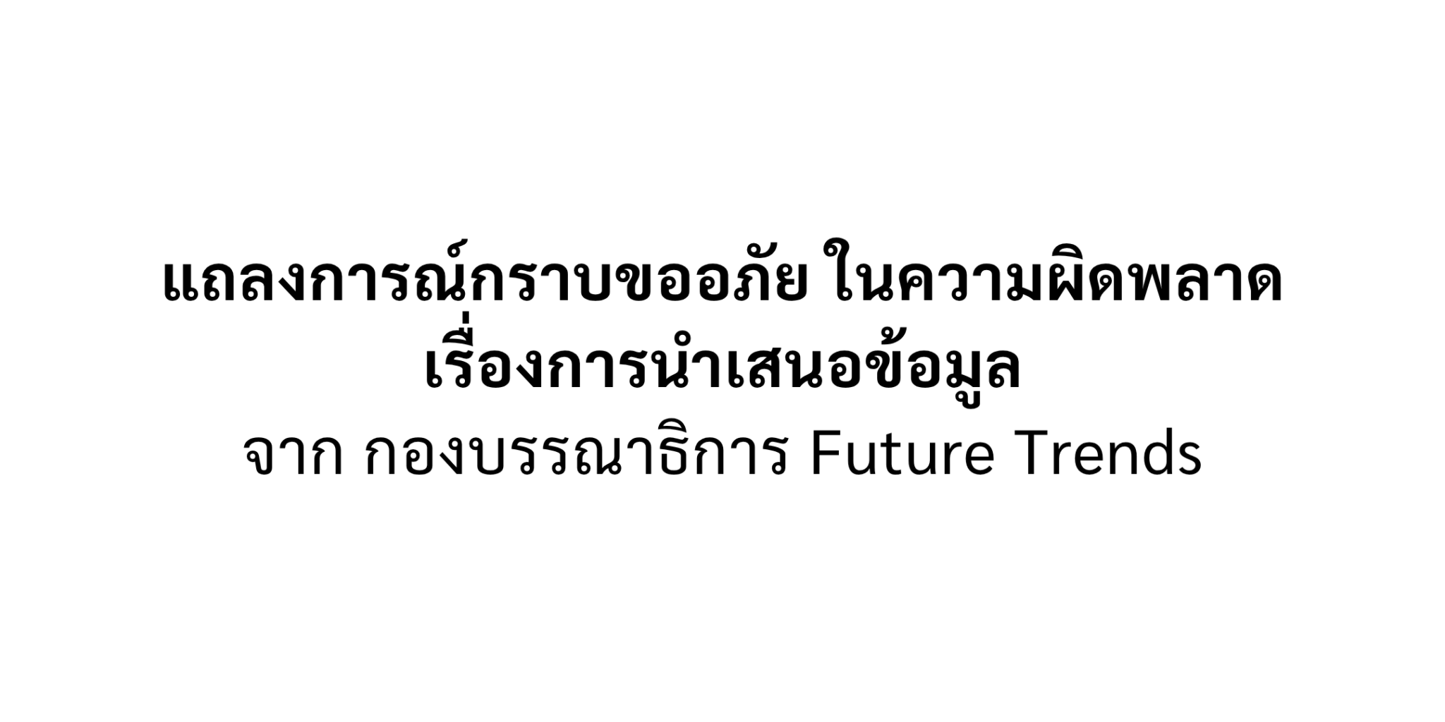 Future Trends น้อมรับผิดชอบต่อความผิดพลาดครั้งนี้อย่างเต็มที่ และขออภัยอย่างสุดซึ้งต่อสำหรับความบกพร่องที่เกิดขึ้น