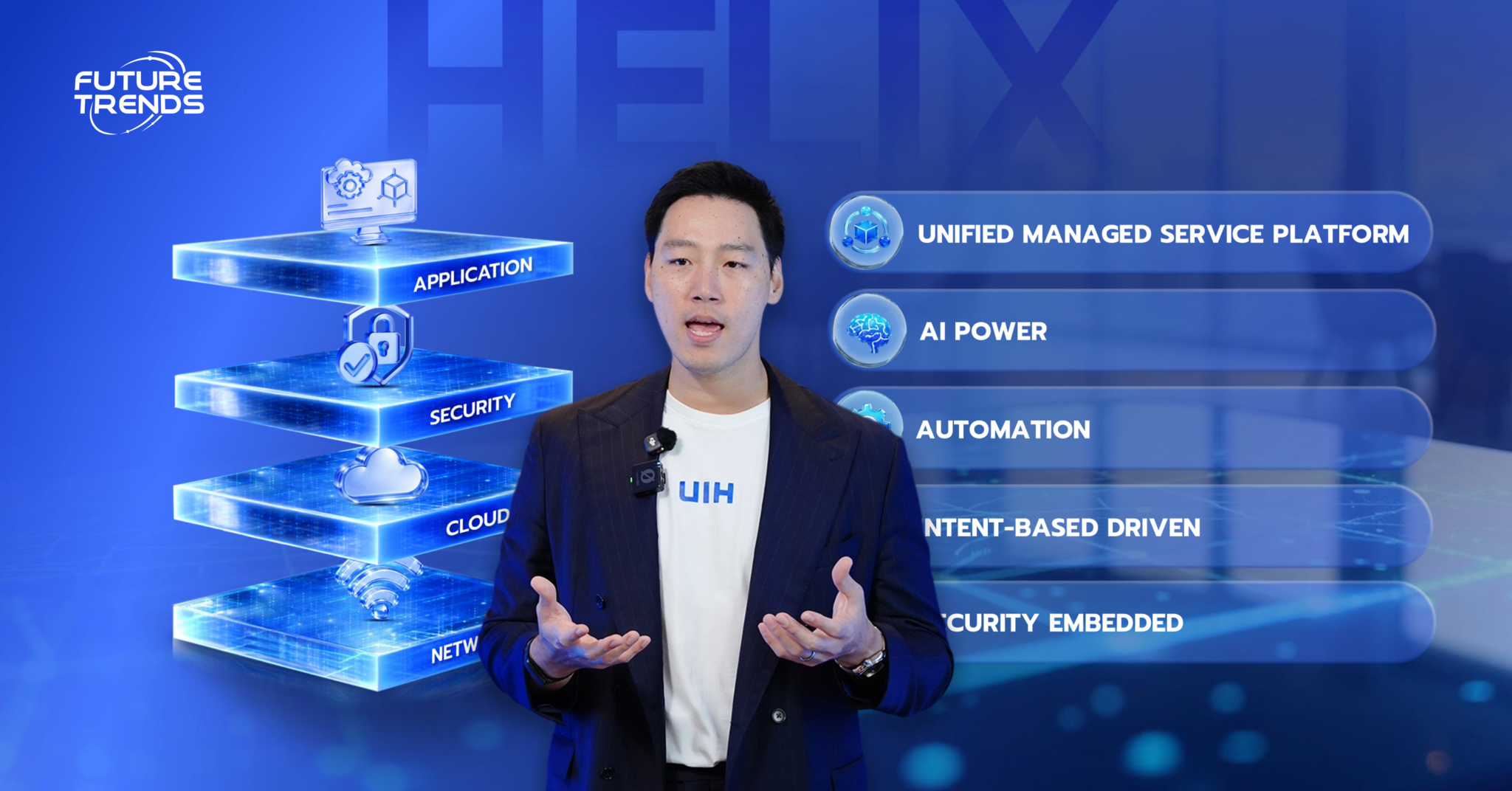 เพื่อปิดช่องว่างระหว่างของการสื่อสารที่ฝั่งไอทีและธุรกิจมักไม่เข้าใจกัน UIH จึงได้นำแนวคิด Intent-Based Infrastructure มาใช้ โดยการใช้ Data และ AI เข้ามาเป็นศูนย์กลาง แนวคิดนี้คือการทำให้ระบบสามารถรับฟังความต้องการในรูปแบบภาษาของมนุษย์จากฝั่งธุรกิจ แล้วแปลงสิ่งเหล่านั้นให้กลายเป็นการตั้งค่าด้านโครงสร้างพื้นฐานและระบบรักษาความปลอดภัยโดยอัตโนมัติ